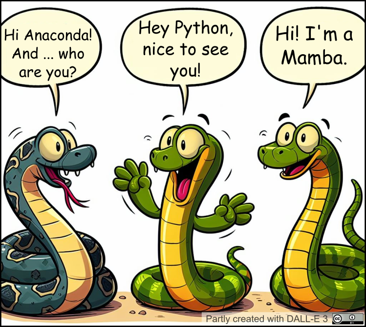 Solving the dependencies for complex environments with many different packages can take a long time (and sometimes fail) with conda. Mamba was developed to improve this. Mamba is a drop-in replacement and uses the same commands and configuration options as Conda, i.e., you can swap almost all commands between Conda and Mamba (see below).
