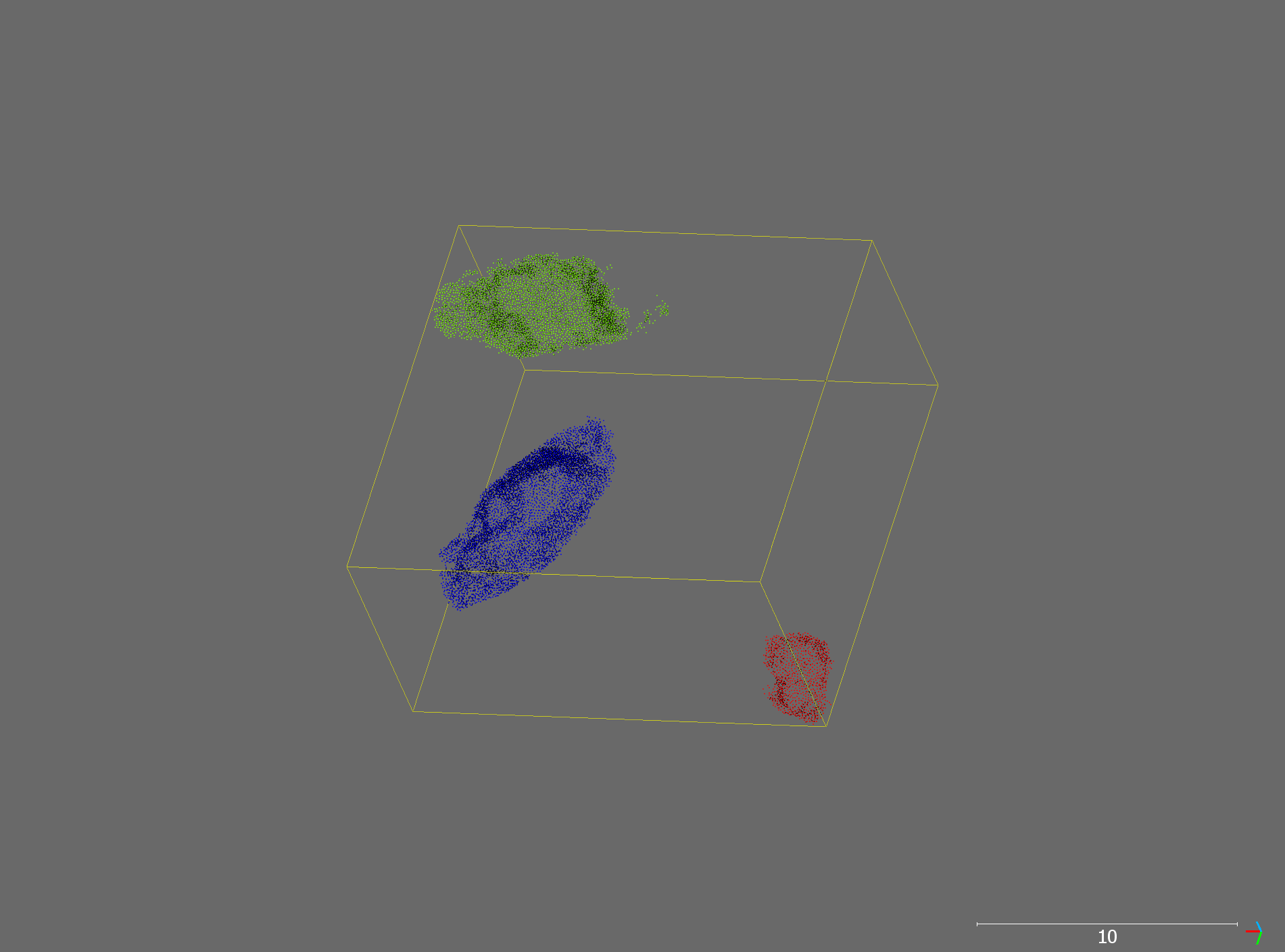 - Color each point cloud by single, distinct colors (e.g., blue and red).